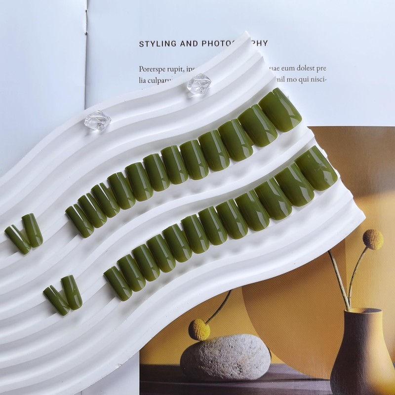 - Coffin Press on Nails in Minutes: Skip the salon without compromising on quality. These easy-to-apply glue on olive green nails short medium square give you a salon-fresh finish in minutes, saving you time while delivering a clean, polished appearance that lasts