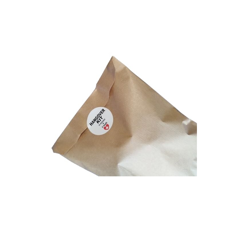 Kraft Paper Bags with Adhesive Labels for Anti-Hangover Kit, 50 Units, 22 x 1...