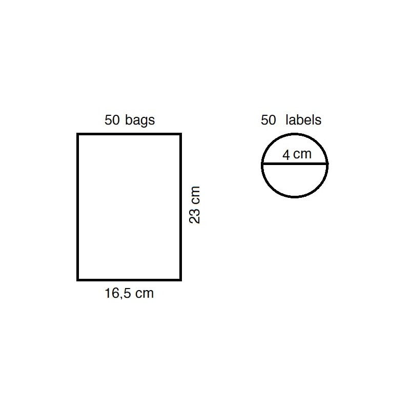 • Set of 50 kraft paper bags 22 x 16.5 cm and 50 plastic stickers 4 cm.