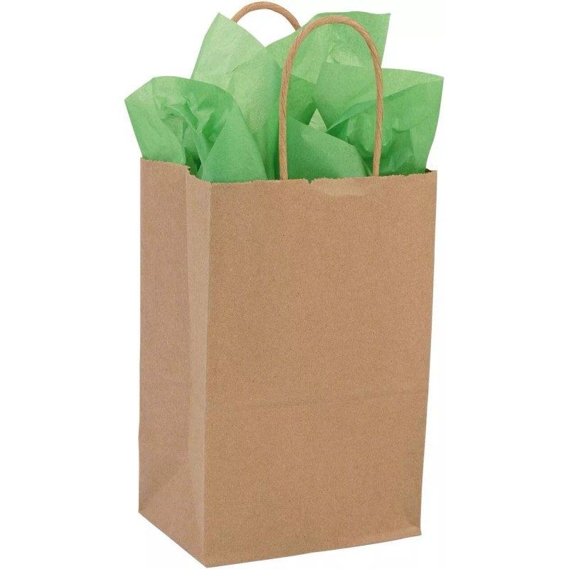 Kraft Paper Shopping 250 Bags Handles 5 ¼” x 3 ½” x 8 ½” Retail Merchandise