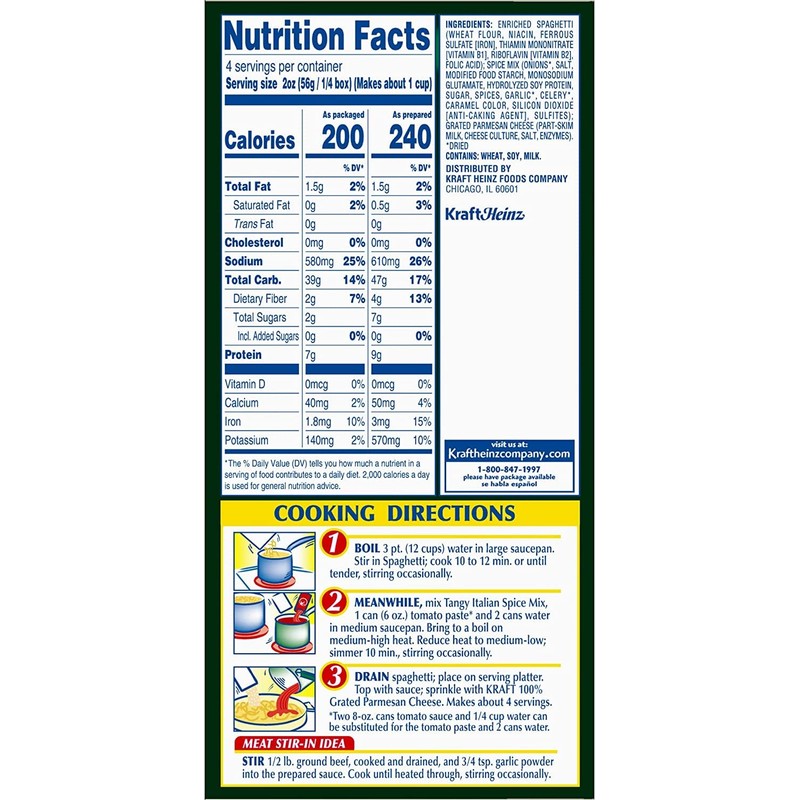 Kraft Spaghetti Classics Tangy Italian Spaghetti (Spices, & Parmesan Cheese Meal Mix, 12 ct Pack, 8 oz Boxes)