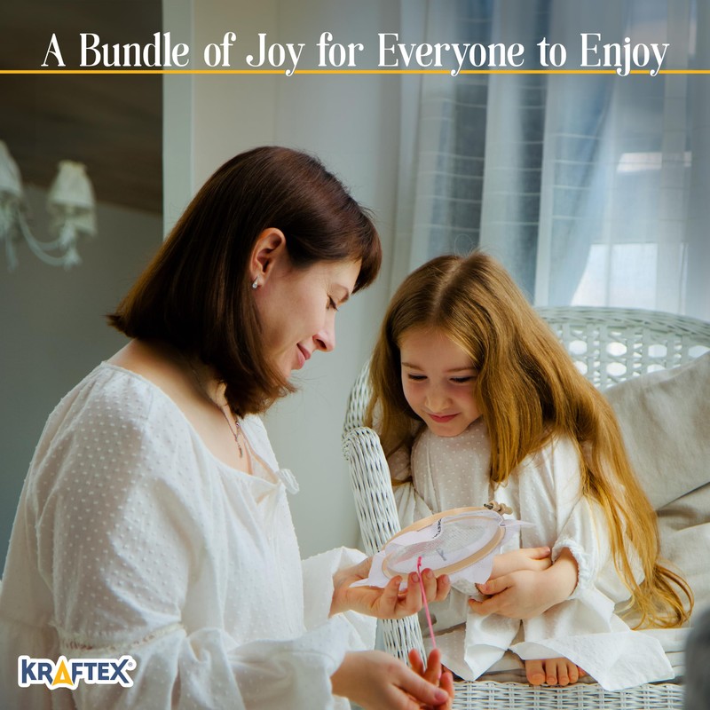 - Comprehensive Kit: Kraftex beginner cross stitch kits for adults easy as we include everything needed including 4 Stamped Cross Stitch kit Patterns (6.75"x6.75"), 1 Embroidery Hoop, 4 Needles and all the threads you'll need plus instructions.