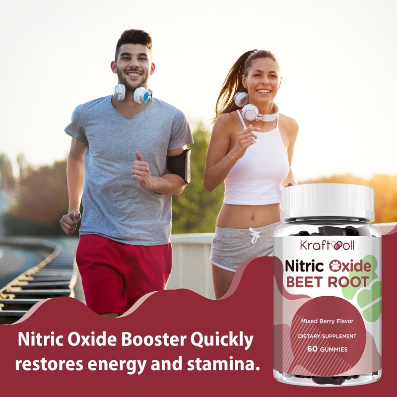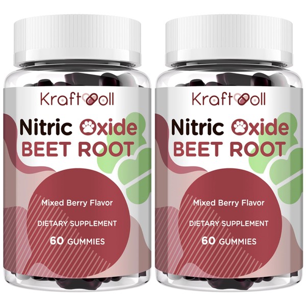 Kraftvoll Nitric Oxide Beet Root Gummies 6000MG - Sugar-Free, Mixed Berry Flavor with Grapeseed Powder, Pomegranate, Vitamin C & B12 - Pre-Workout Energy - 60 Gummies (2 Bottles)
