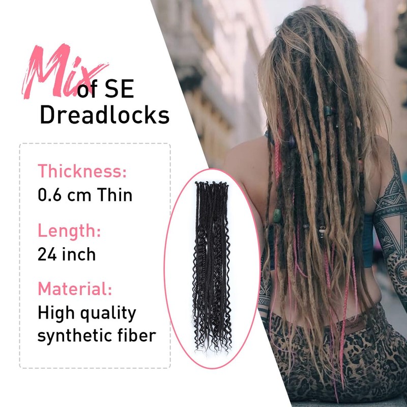 - Mixed SE Set Package includes : 24 inch Single Ended: Straight Dreads * 10pcs + Wavy Dreads * 5pcs + Boho Box Dreads * 5pcs ; totally 20 pcs dreadlocks with dreads accessories in each pack.
