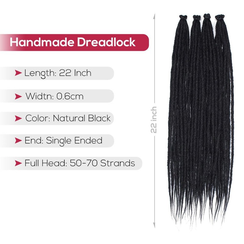 Kraler Dreadlock Extensions, 22" Black Synthetic Crochet Dreads Extensions 100% Handmade Single Ended Dreads Thin 0.6cm Width Reggae Style Dreadlock for Girls(10 Strands)