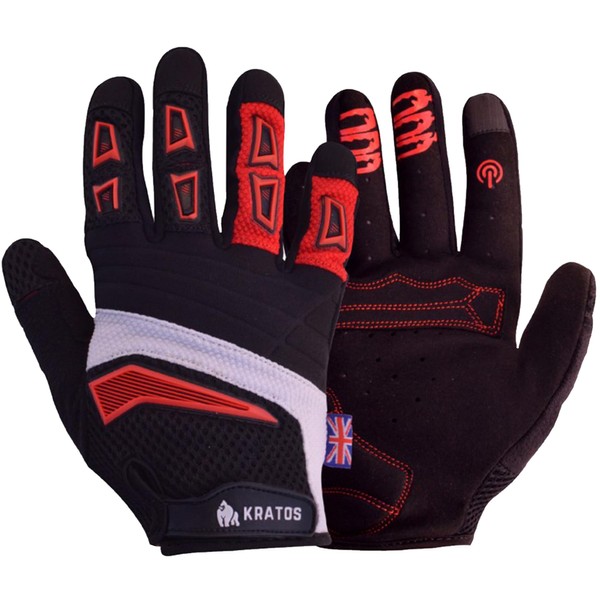 Kratos Anti-Slip Cycling Gloves for Men and Women, Touchscreen Breathable bicycle Gloves|Full Finger Mountain Bike Gloves for BMX ATV MTB Riding, Road Racing, Bicycle, Boating.