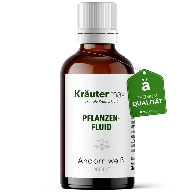 Kräutermax plant fluids are produced using a traditional distillation process. The production of the Kräutermax fluids is based on three main stages. Namely, maceration and fermentation of plant components, water vapour distillation into a template of pure alcohol and ashing of the residue (the smug). This manufacturing art had its flowering period in the Middle Ages and has therefore enjoyed great popularity for a long time. STORAGE of Andorn drops: close well after removal. Store dry and protected from heat and light. Keep out of reach of children.