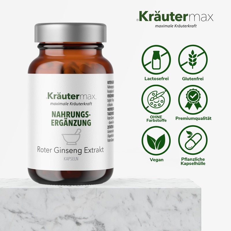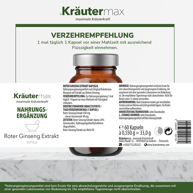 Dietary supplement according to original Kräutermax formula with extract of red ginseng.