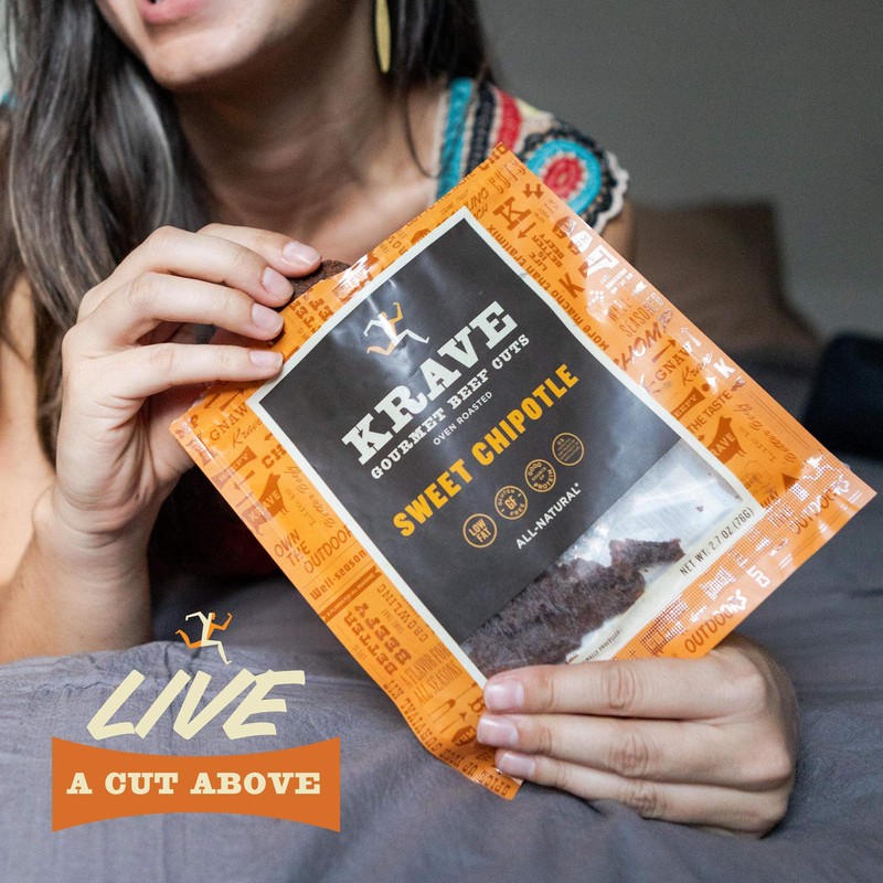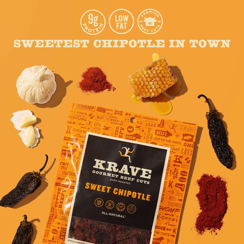 KRAVE Sweet Chipotle Beef Jerky, 100% Grass-Fed Beef, No Artificial Ingredients, Gluten-Free, 9g Protein, No Nitrates - 2.7 oz bags (4 Pack)