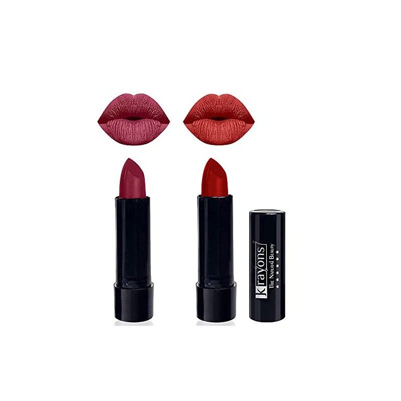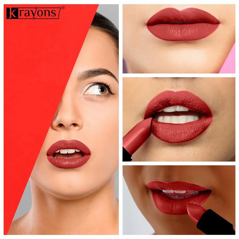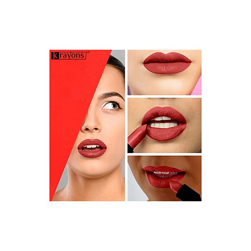 Krayons Cute Pop Matte Lipstick in a trendy matte finish is the moisturizing lipstick for irresistible kissable lips. Load your lips with plush, pigment-rich color choosing from 12 brand new shades of Matte Lipstick. From hot pinks to deep Reds, Krayons Lipsticks glides right on and stays in place with a silky matte finish that never feels dry,making them appear incredibly even and tender. The color gorgeous shades of Krayons Matte lipstick provides rich color in a matte finish for all day wear without drying.