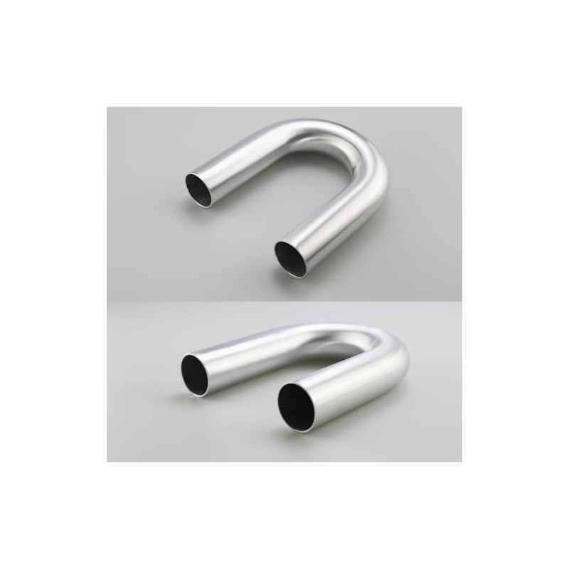 KRD PERFORMANCE Aluminum Alloy Pipe, 180 Degree, 45mm (1.75") OD, Leg Length 4" (100mm), great for DIY project like custom made turbo pipe, intercooler pipe and air intake pipeAdvantages:1. Air Intake Flow Rate: High Class Brushed Treatment surface finish provides enhanced air intake flow with reduced turbulence2. Heat Dissipation: As compare to stock pipings, heat dissipation is better3. Engine Bay Dress-up: Stylish Brushed pipe beautifies the engine bay layout4. Durability: Anodized T6061 aluminum pipes resist wear, rust and corrosion for extra durability.