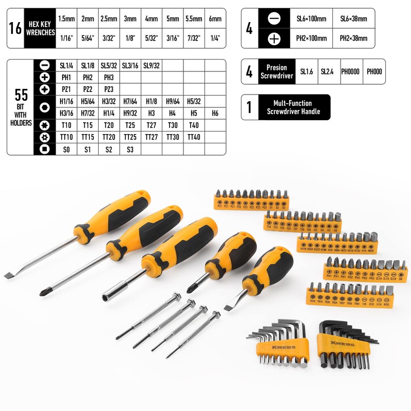- 【GREAT GIFT CHOICE】 -KREBS 168 pcs tool kit is easy to carry and stock. It is a good gift choice for men and women. All tools are easily to pick up and easy to carry. All tools are made of soft ergonomically designed handle. You can put it at home, office, garage,etc.