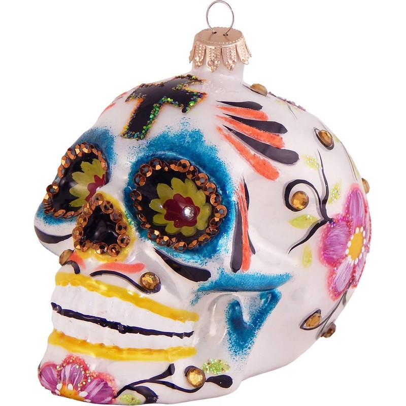 Krebs Glas Lauscha: Krebs Glas Lauscha has been producing classic and modern glass Christmas tree decorations since 1992. Lauscha is considered the birthplace of glass Christmas tree decorations worldwide and offers a wide range from traditional Christmas baubles to unusual tree decorations. Christmas Pendants: The focus of the festively decorated Christmas tree is always the beautifully made glass ornaments. They make the living room shine Christmas and perfectly match the Christmas season. - Skull - This decoration pendant is inspired by the Mexican holiday "Dia de los Muertos". This Christmas pendant is the perfect way to unite two cultures.