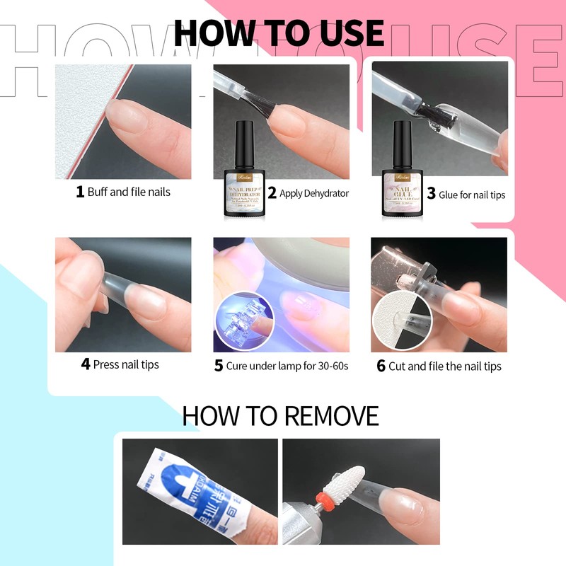 - Kredioo Pack of 500 nail tips for gel extensions, long coffin
