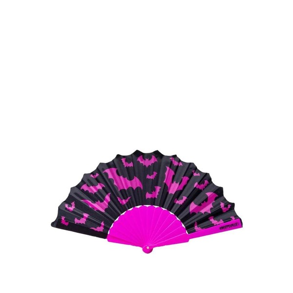 - Kreepsville 666 Bat Scallop Fan – Features a bold pink flying bat design on black fabric, adding a spooky and gothic touch to your accessories. Ideal for alternative fashion lovers looking to stay cool in style.
