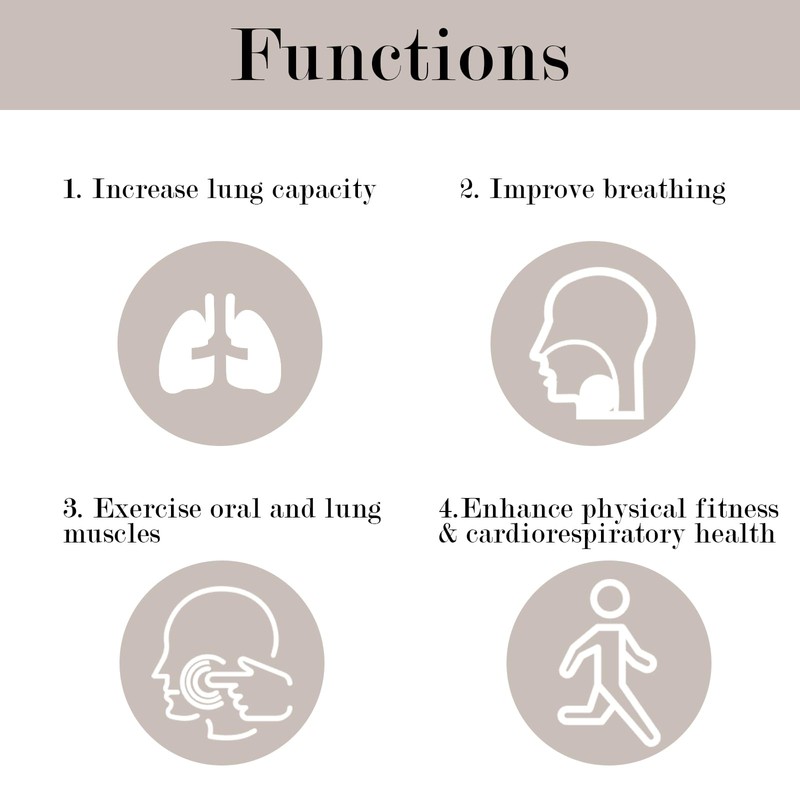 Consistent use improves exercise endurance, increases lung capacity, improves heart and lung function, and also helps with recovery from lung surgery, relieves breathing difficulties, lowers blood pressure, improves sleep quality, reduces stress and relaxes the mind.