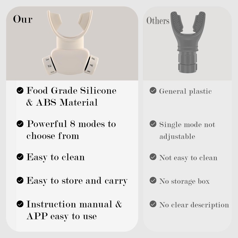 - PREMIUM MATERIAL: The main body of the breathing exercise device is made of high-quality ABS material, and the bite and suction nozzle are made of food-grade silicone, which is very soft, safe and without any odor.