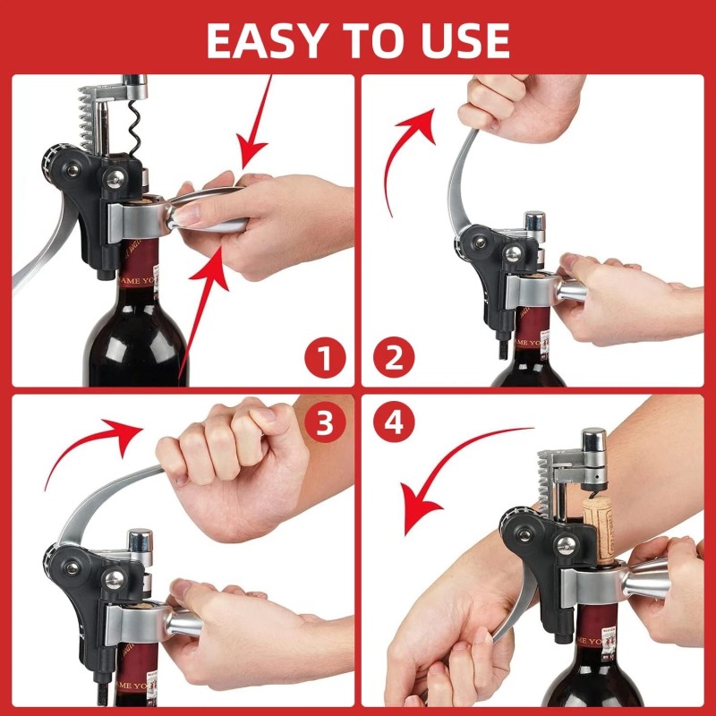 【Easy to Use】 The Corkscrew Wine Opener features an intuitive upright design, allowing you to quickly and effortlessly remove corks with a simple up-and-down lever action. Ideal for both beginners and experts or any wine enthusiast.