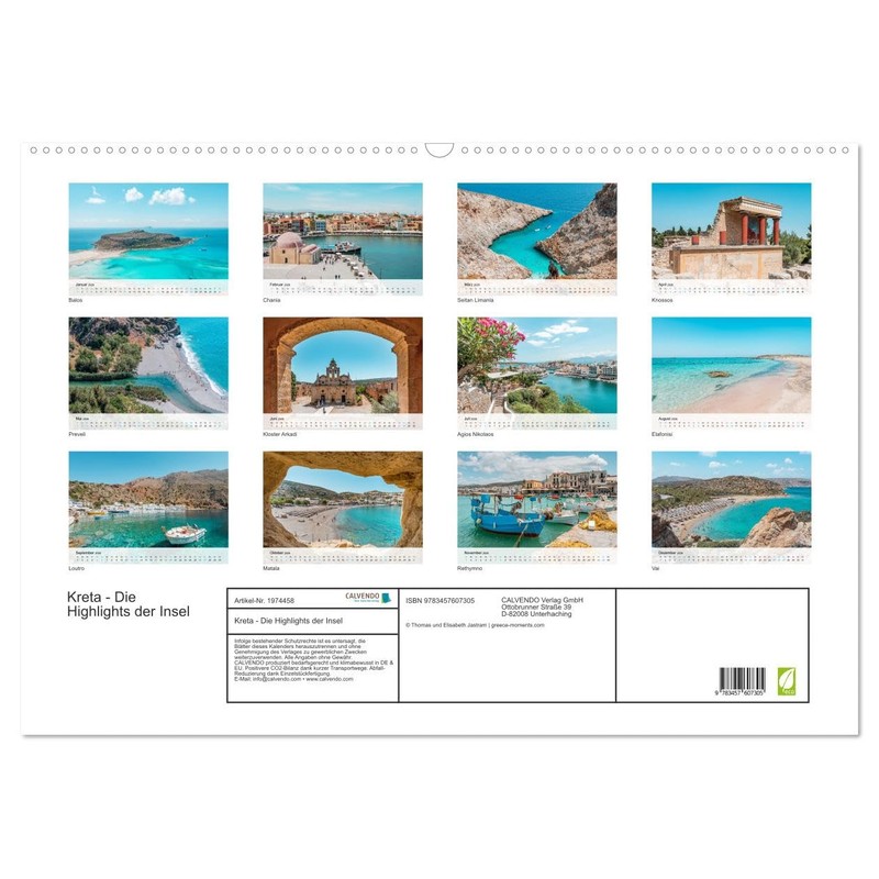 Kreta - Die Highlights der Insel (Wandkalender 2026 DIN A2 quer), CALVENDO Monatskalender: Traumhafte Fotomotive von der griechischen Insel Kreta (CALVENDO Orte)
