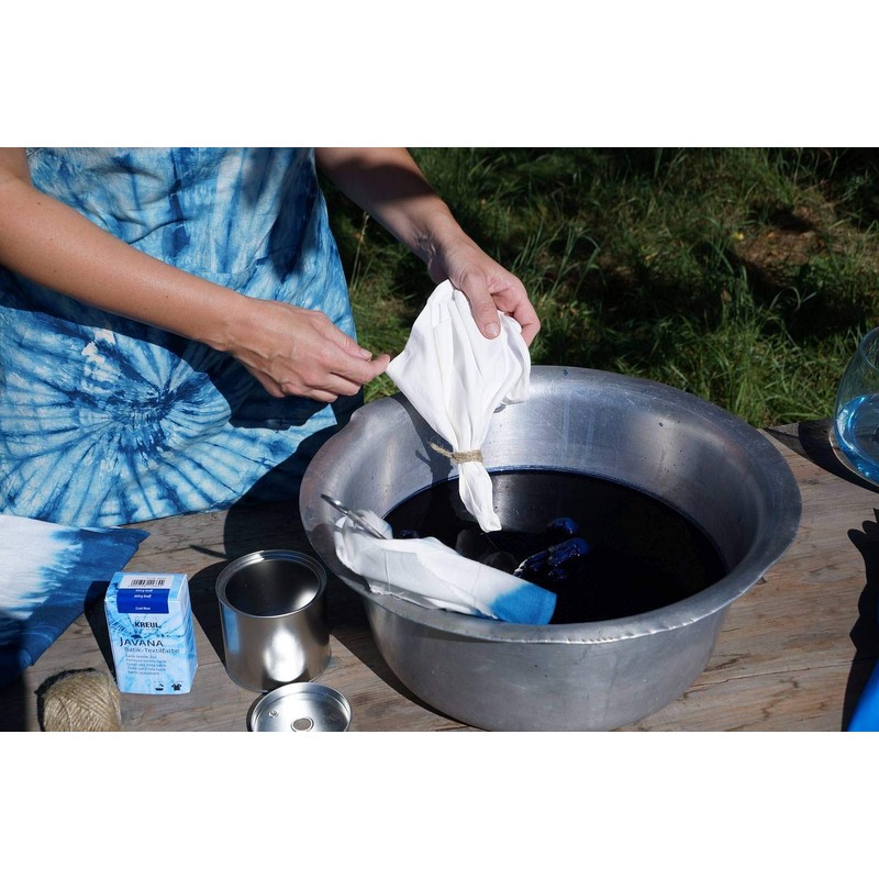 The dye is easy to dose, thanks to the plastic bottles. It is also easy to store. Javana batik dye is suitable for batik techniques such as the Shibori technique (patterns are created by tying, folding or knotting), or the widely used dip dye technique. As dyeing is also possible at low temperatures (50 °C), the dye is also suitable for batik wax-resist dyeing (waxed surfaces do not take on dye). The dyed fabrics are not boil-proof, but should be washed separately at a maximum of 40 °C. A fixing agent can be used to ensure long-lasting colour fastness.