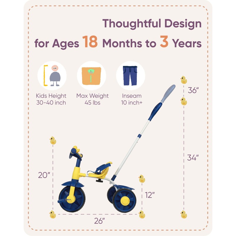 - 2-IN-1 TODDLER TRICYCLE – This unique trike for kids gives them multiple options to learn and play including parent-push mode with a long parent-push bar, or traditional cycling mode.