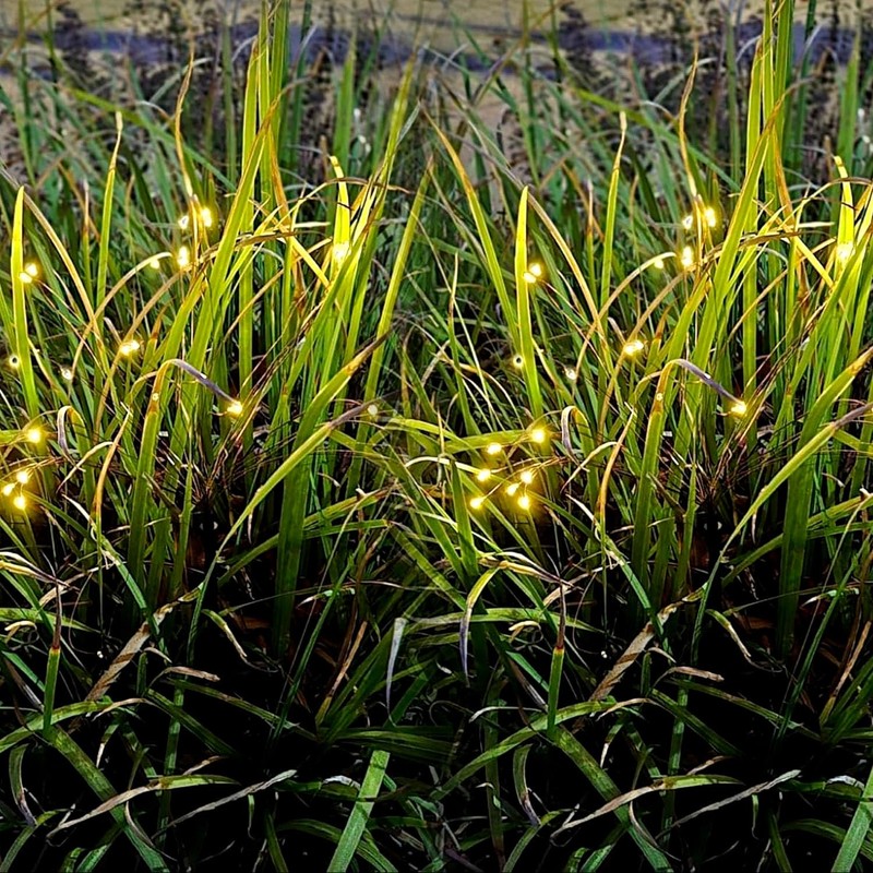 - Solar Powered Garden Lights: Durable, ultra thin alloy applied to build the natural, vivid and impressive grass-like or firefly-like garden lights. Powered by monocrystal solar panel, assembled with rechargeable 600mAh Ni-MH battery. The solar fairy lights runs on solar power, save electricity and you can put it anywhere outdoors. Provides 6-8 hours continuous illumination after getting fully charged.