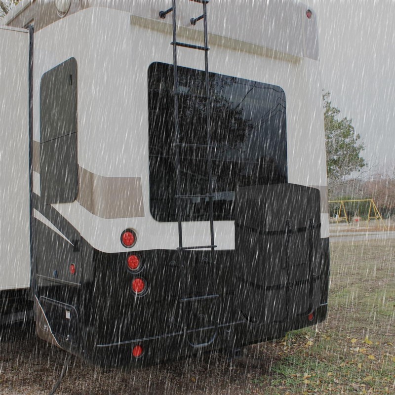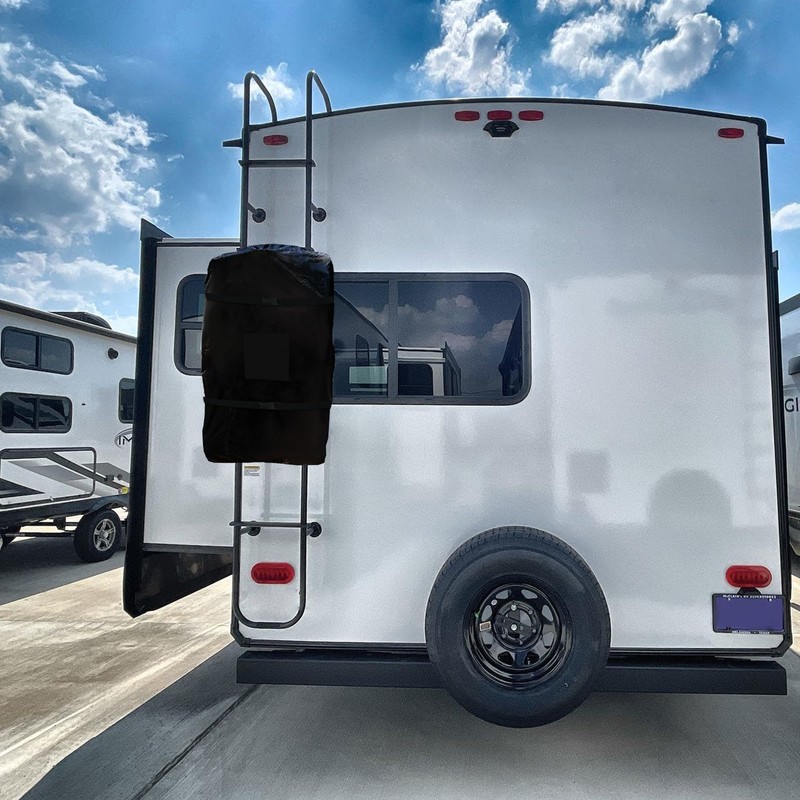 - Easy to Use:①The back of the cover is designed with a two-way zipper, which will not affect your to hang it on the ladder.②The two buckle at the bottom ensure even during strong winds, the lid can be fixed in place. ③Two bandage have also been added to the cover to make it more securely fixed to the RV ladder and RV bumper bracket