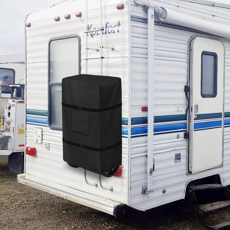 Krismile RV Tote Tank Cover,Heavy Duty Waterproof Portable Camper Cover for 15-21 Gallon Portable Camper (Only Cover,Black)