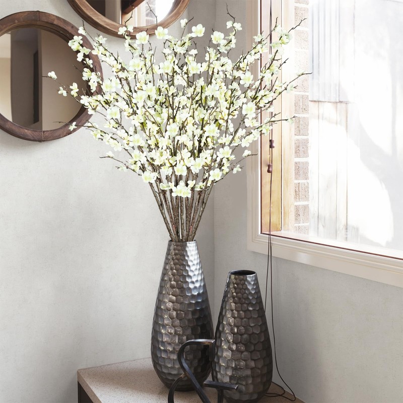 - Cherry Blossom Flowers: Pack of 12, 39” (99cm) in height. These white cherry blossom stems for tall vases, and the width is adjustable by spreading the branches
