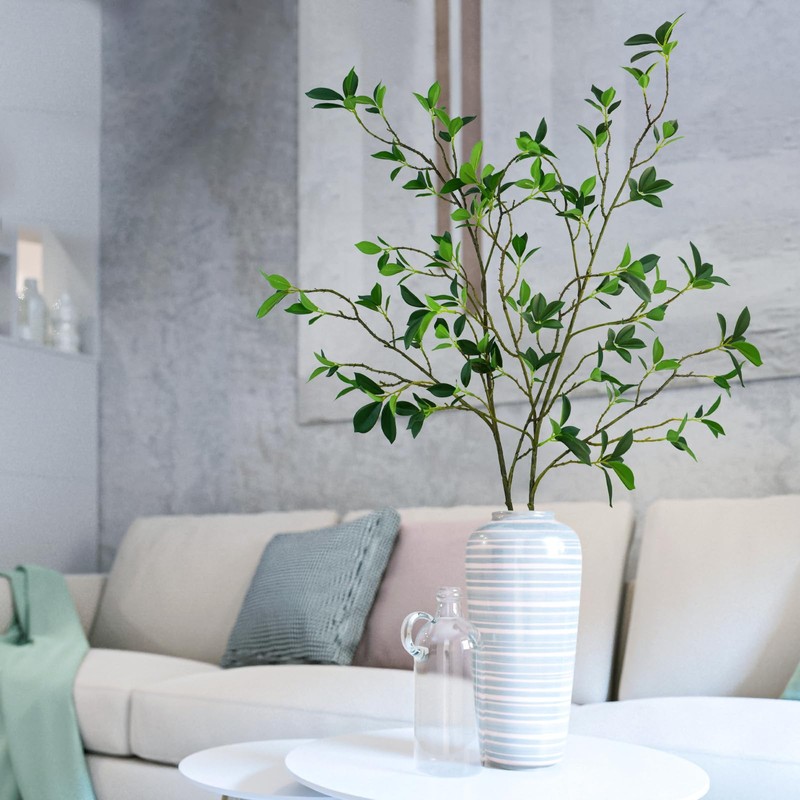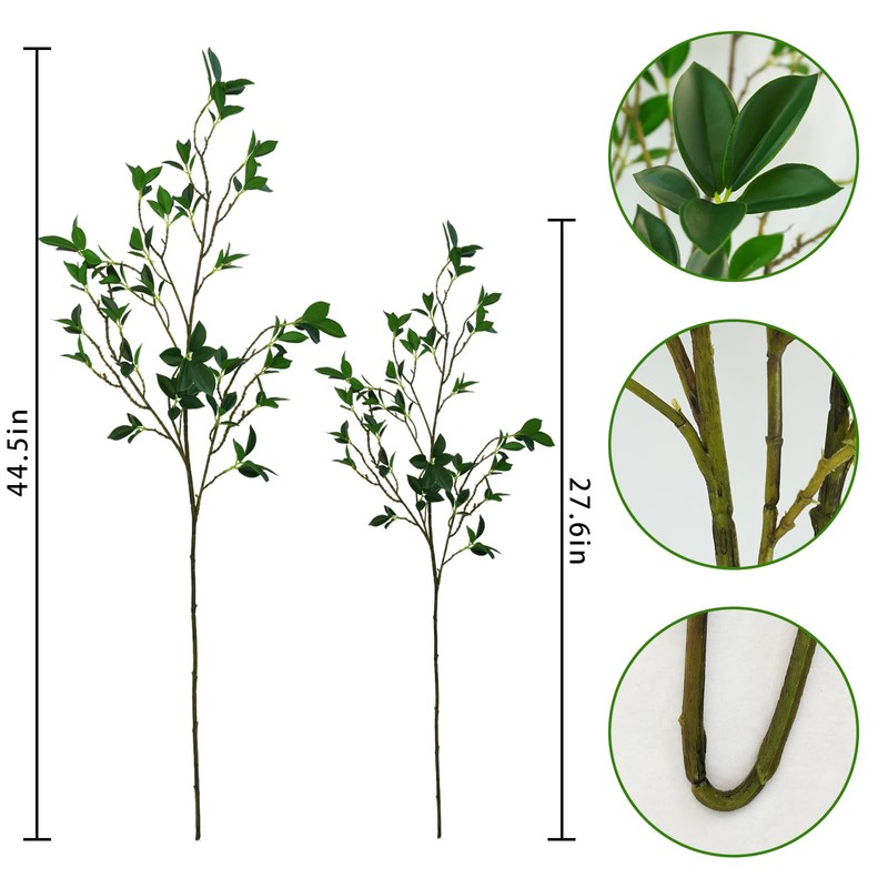 Krissing 2Pcs Artificial Greenery Stems,Tall Fake Ficus Twig Branches Plants Faux Greenery Stems Branches for Vase Fillers Home Office Wedding Spring Table Decor