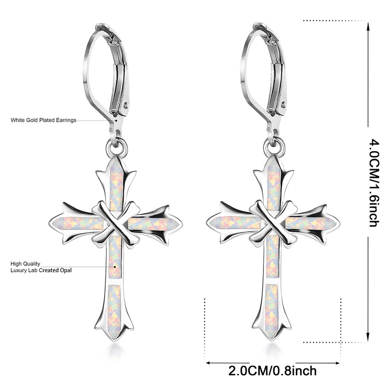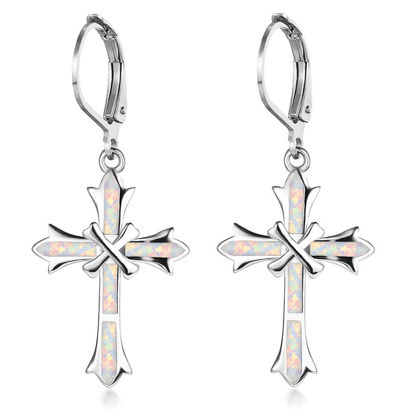 KristLand Weißgold überzogen Dame Tropfen Kreuz Ohrringe Weinlese Opal Haken Ohrringe für Frauen/Geschenkbox Weiße Opal