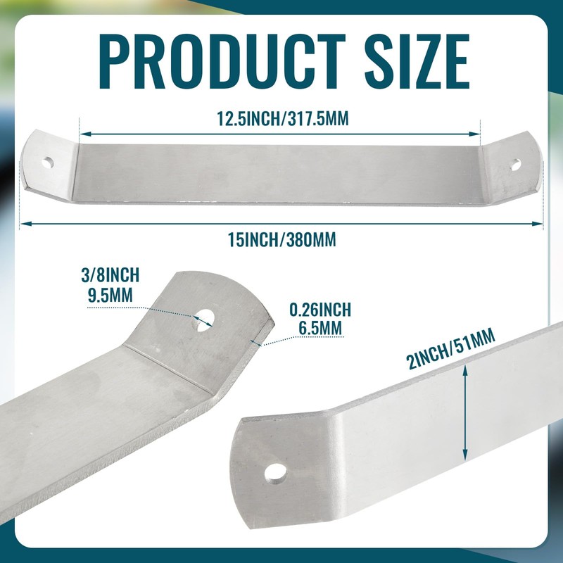 - Product Dimensions: the size of each boat trailer fender is about 15 inches/380mm in length, 2 inches/51mm in width, 1/4 inch/6.5mm in thickness, and 3/8 inch/9.5mm in hole diameter; The product is produced according to the metric system and has tolerances