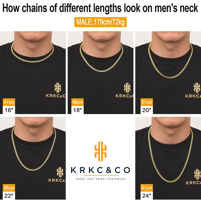 - [Flat Diamond-Cut Gold Chain] KRKC & CO men's cuban link chain features a flat diamond-cut bevel for a more reflective look than other thin chain necklace. Finely polished to ensure a bright, sparkling and flawless shine with an amazingly smooth touch. And it's a popular style that won't be swayed by fashion. Wear it to make you stand out from the crowd.