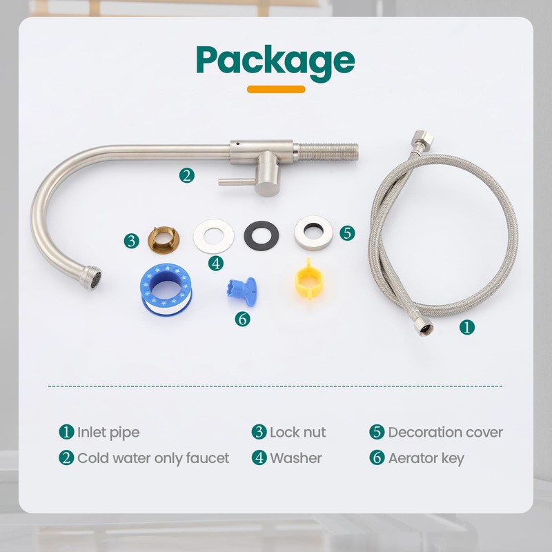 - BRUSHED NICKEL FINISH - This cold water faucet features a brushed nickel finish, enjoy durability against scrapes, invisible fingerprints, and hassle-free maintenance,