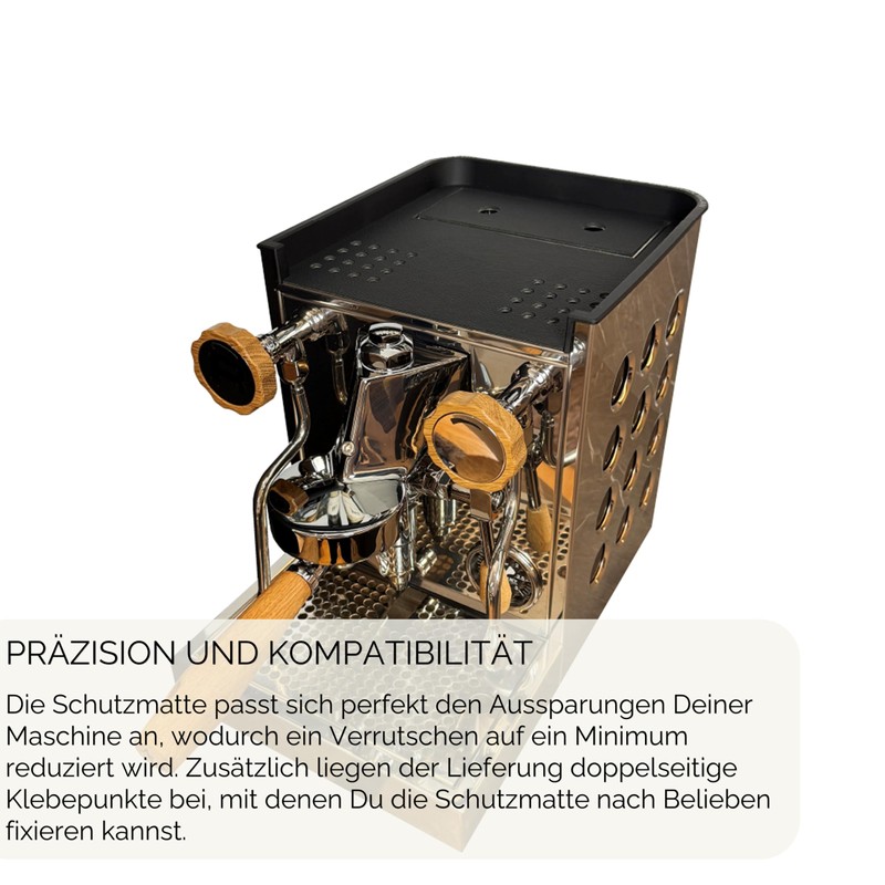 - Precision and compatibility: each protective mat has been machine-specific designed and then cut out by precision laser. The protective mat adapts perfectly to the cut-outs of your machine. Its comfortable thickness ensures wrinkle-free and wave-free positioning on the cup plate.
