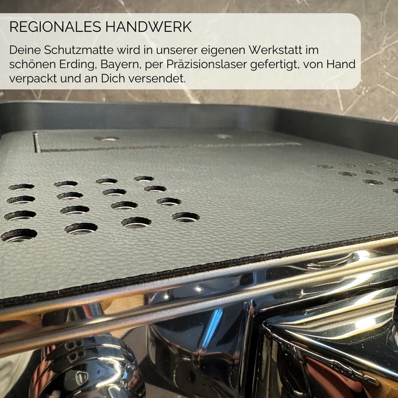 - Regional craftsmanship: your protective mat is manufactured by precision laser in our own workshop in beautiful Erding, Bavaria, hand-packed and shipped to you.