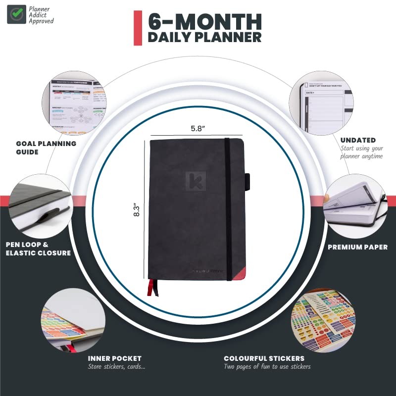 KRONO Planner Premium - Best Undated Daily 2023 Planner to increase Productivity, Focus, Personal Growth, Happiness, and Success | Undated | A5 | Black
