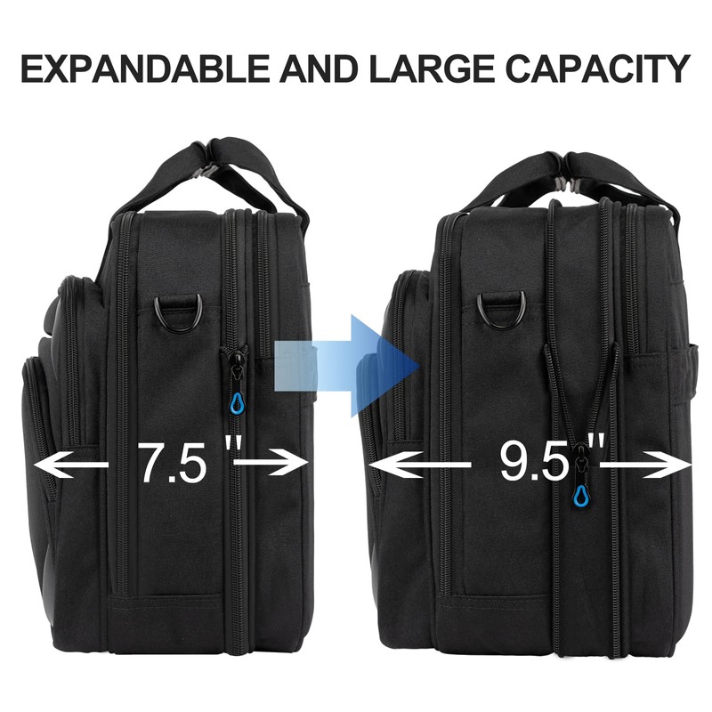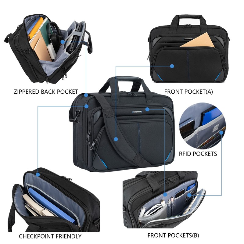 • Roomy Compartment: Main compartment includes a 15.6" TSA-Friendly padded laptop compartment, tablet pocket, and 2 additional panel pockets, multiple additional sections for organization. Front zippered compartment with organizational pockets for pens, keys, cell phone, and other items. Back compartment for documents