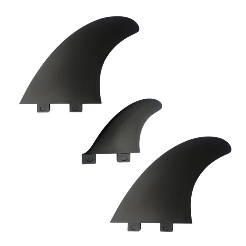 - FCS-compatible 3 fin set. Fiberglass reinforced PVC provides high strength and abrasion resistance for long lasting performance