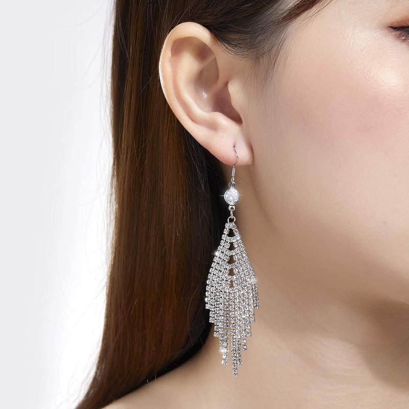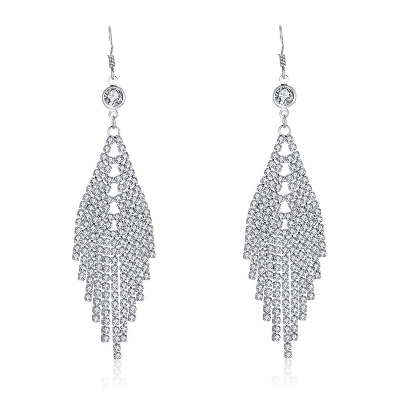 - Chic Chandelier Design: Featuring an elegant chandelier style with transparent crystal tassels and sterling silver hooks, these earrings measure 9.0 x 2.5 cm.