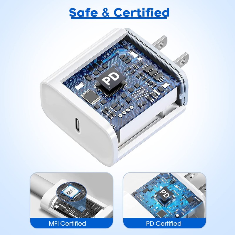 - What you will get 2 * 6 feet long Apple-certified fast charging cable and 2 * super rapid iPhone fast charging USB C wall charger! We are very confident in the long-lasting performance of the certified USB C iPhone wall charger and power cord. Just contact us and we can provide the brand with additional worry-free product support and a free customer service store!