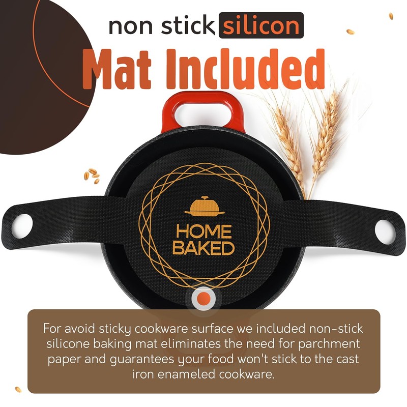 - VERSATILE 6 QT DUTCH OVEN: Enameled cast iron cookware set versatility goes beyond baking artisan bread. Whether you're roasting a chicken or braising a pot roast, the enameled cast iron pots will revolutionize your cooking. An included non-stick silicone baking mat eliminates the need for parchment paper and guarantees your food won't stick to the cast iron enameled cookware. Baking or cooking, the Dutch oven for bread baking is the perfect partner for your culinary experiments.