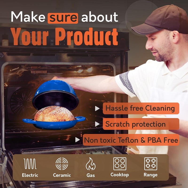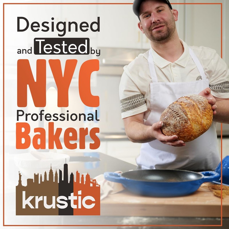 • BUY WITH CONFIDENCE: Headquartered in New York, a hub of innovation and creativity, Krustic is a brand that prides itself on the outstanding quality and design of the Dutch oven for bread. Our dedicated team in Brooklyn conceptualizes and meticulously tests every enamel cast iron Dutch oven, ensuring that you receive nothing less than the best. Our customer support team is always on standby, ready to serve you if you have any questions or concerns about our enamel Dutch oven.
