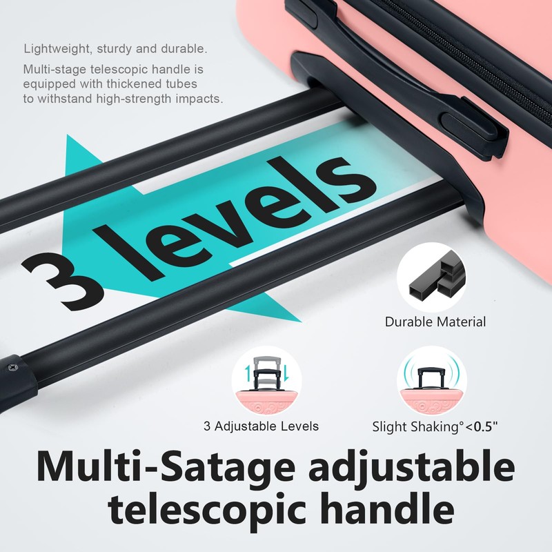 - [Excellent quality] The suitcase is mainly made of ABS+PC material, after many experiments to combine the strong material and stylish appearance of the suitcase, while having practicality and aesthetics.