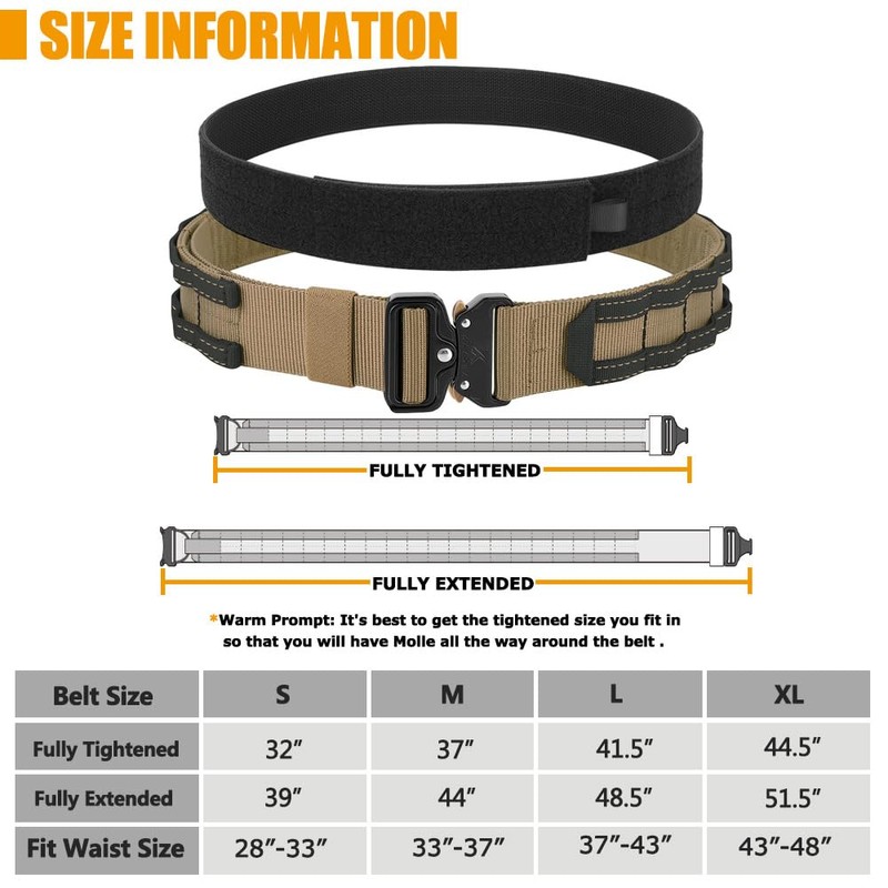 - El cinturón interior de 1.5 pulgadas con una pestaña de apoyo, va dentro de las trabillas de tu cinturón para un uso cómodo durante todo el día, es suave, cómodo, mientras que proporciona un área de fijación estable para el cinturón exterior Molle