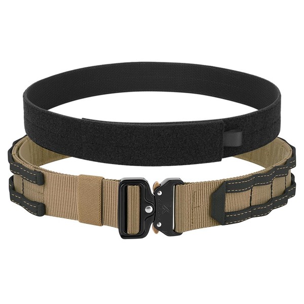 KRYDEX Cinturón de liberación rápida Rigger Molle de 1.75 pulgadas interior y exterior táctico resistente, Coyote Brown+black, Medium