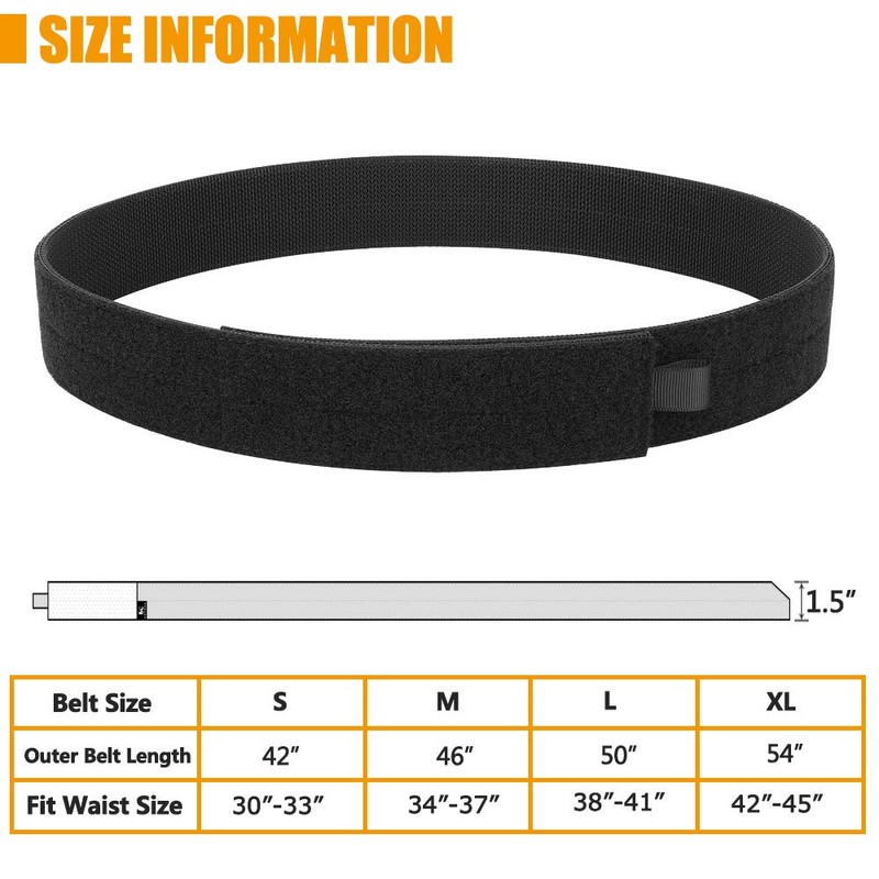 KRYDEX Tactical Inner Belt 1.5 Inch Loop Liner Under Belt for Outer Duty Belt (Black, M:(34"-37"))