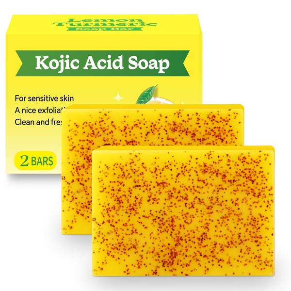 Krynet Kojic Acid Soap, Lemon Turmeric Soap Bar with Vitamin C for Dry Sensitive Skin, Turmeric Bar for Face, Body Hands 2 Bars