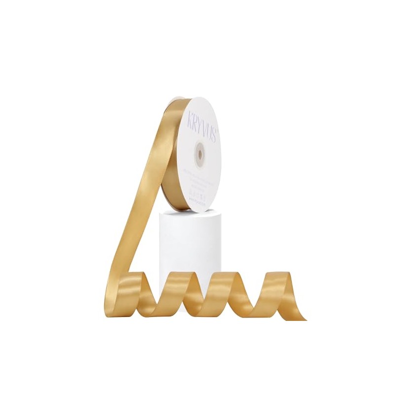 - Premium Double Faced Satin Ribbon: Made from 100% high-quality polyester, this Kryvus Light Gold Satin Ribbon features a smooth, silk-like finish on both sides, ensuring a luxurious look and feel. Perfect for adding a touch of elegance to any project