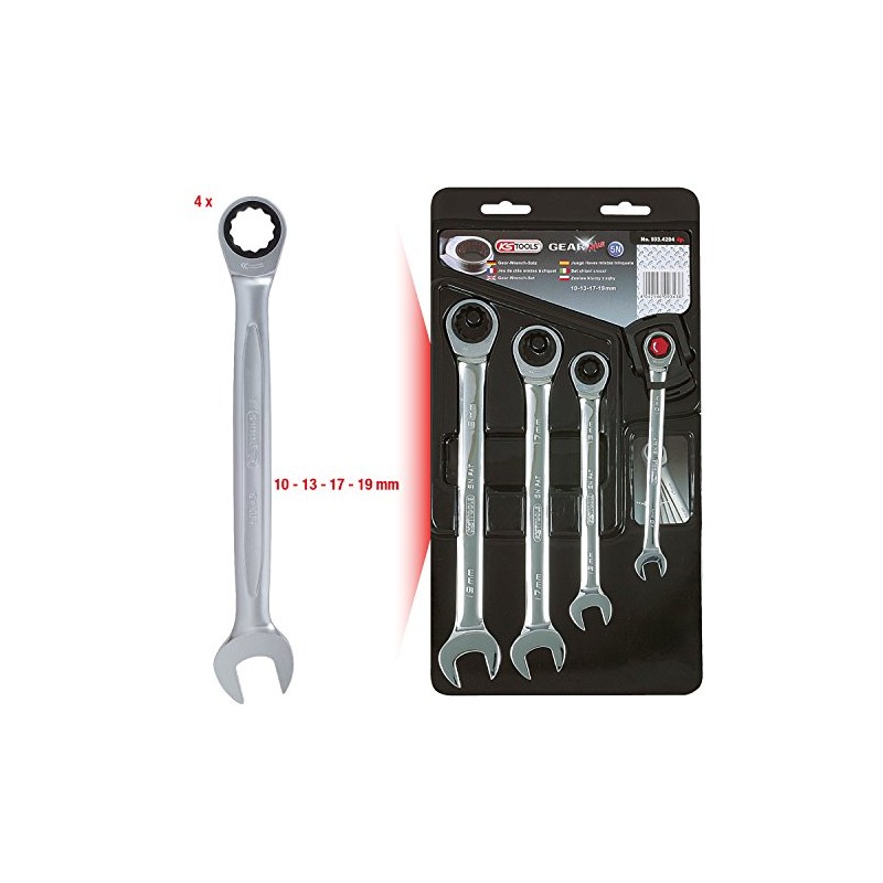 KS Tools 503.4204 GEAR+ Comb Ratchet Spanner Set, 4 Pieces